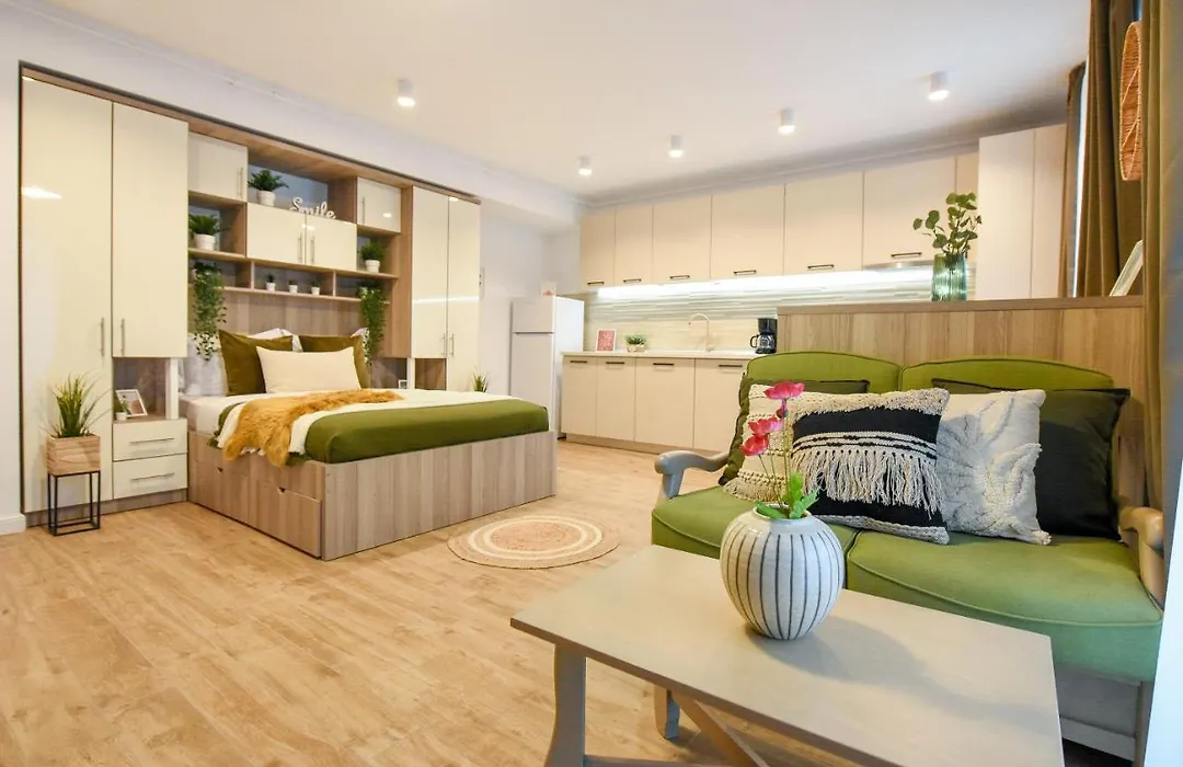 Tento 1-pokojový apartmán nabízí 1 koupelen a kompletní kuchyni s rychlovarnou konvicí, chladničkou a troubou.